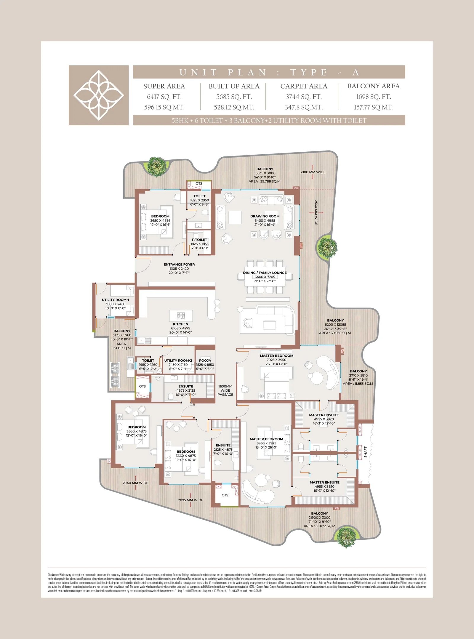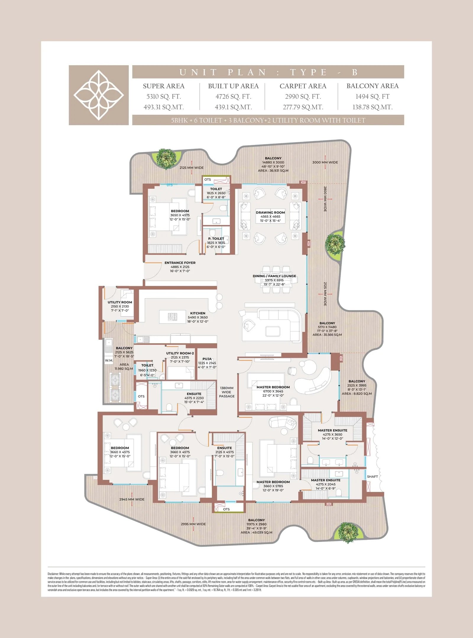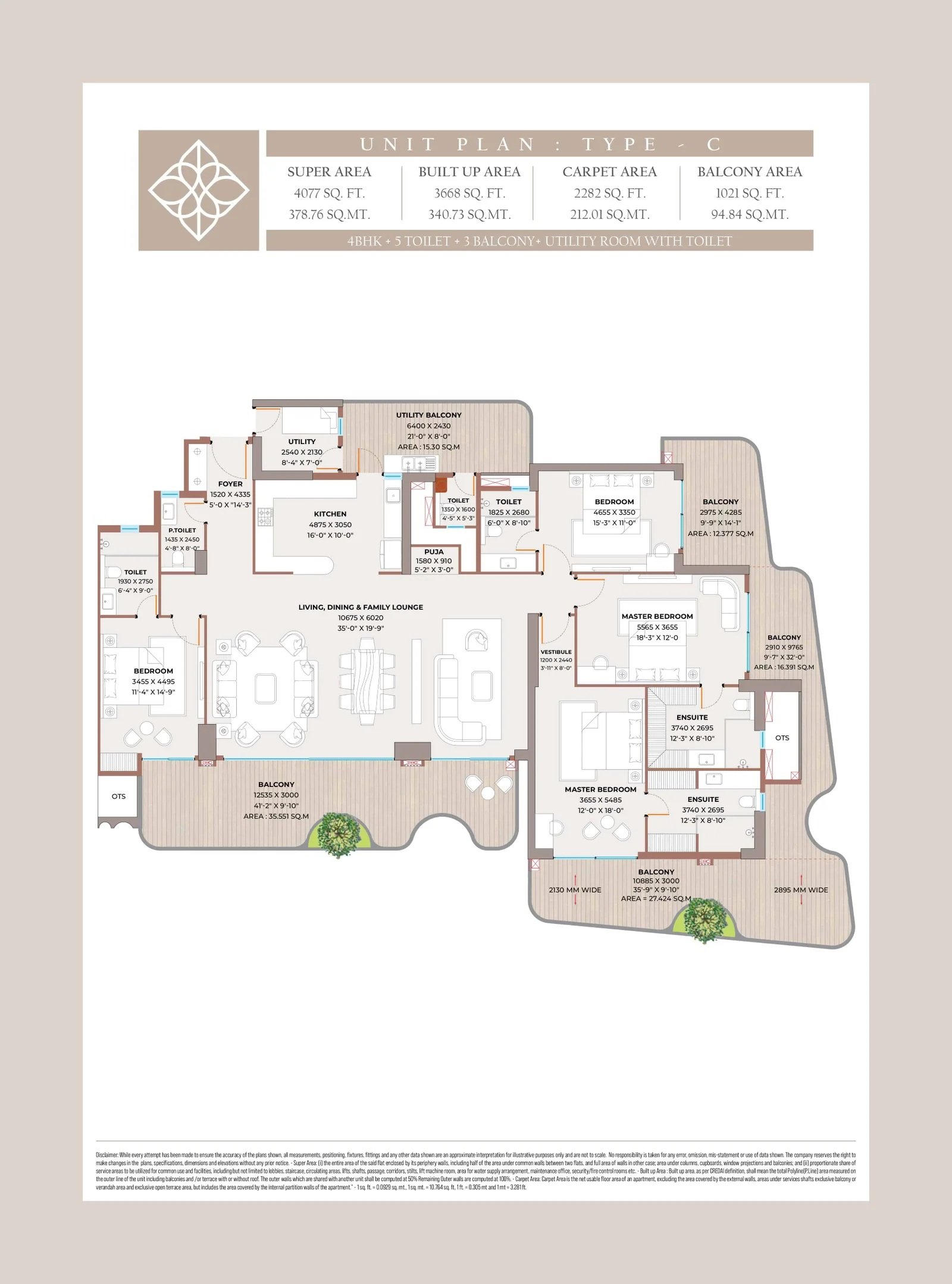 The homes at Clove County Sector 151 Noida are classified as "condominiums with grand dimensions." The size ranges from around 4,077 sq. feet. to an impressive 6,417 square. ft. The homes are designed to accommodate families with multiple generations and prominent residents. The 5 and 4 BHK layouts are considerably bigger than the standard, with spacious eating and living areas which serve as entertaining areas. The master suites as well as the second bedrooms have been designed to focus on privacy. They have separate dressing rooms.