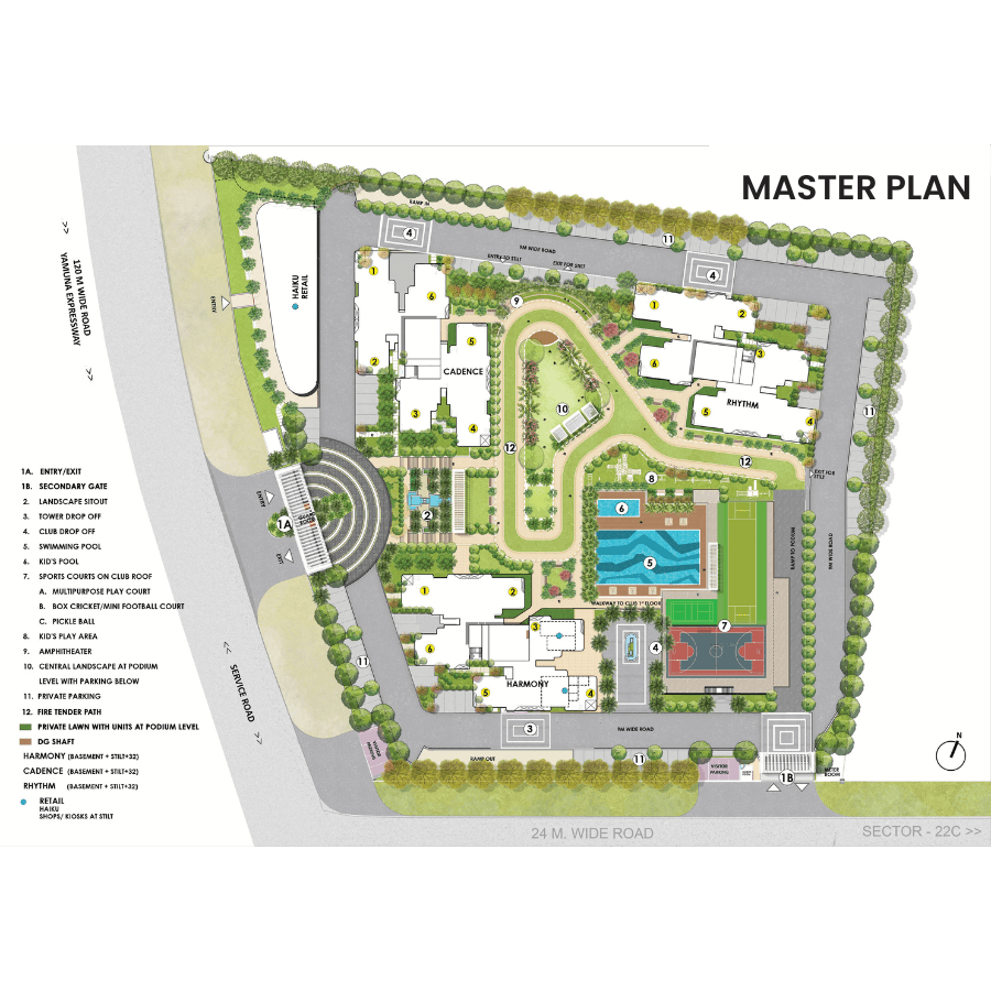 The project was designed by the legendary Eldeco Group, known for their dedication to speedy delivery and quality this project spans five lush acre. The development is adorned with three stunning buildings: Harmony, Cadence as well as Rhythm.