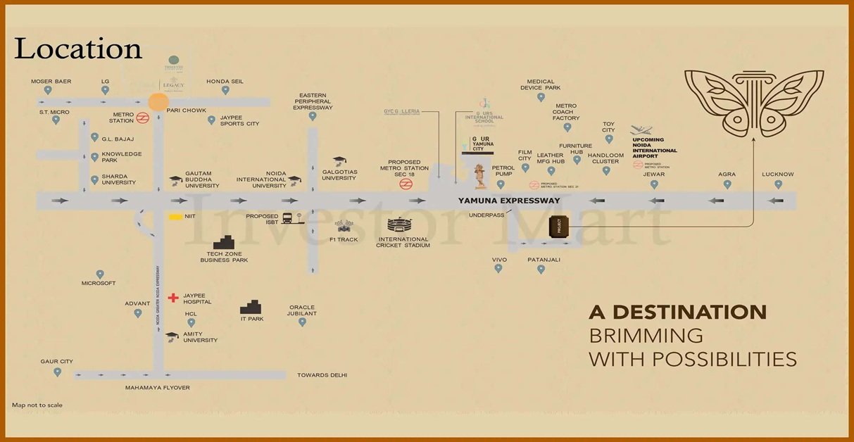 Gaur Chrysalis is located directly on the Yamuna Expressway in Sector 22D. It is about 10 minutes from the new Noida International Airport (Jewar) and is located close to the Eastern Peripheral Expressway, Film City, and important educational institutions.