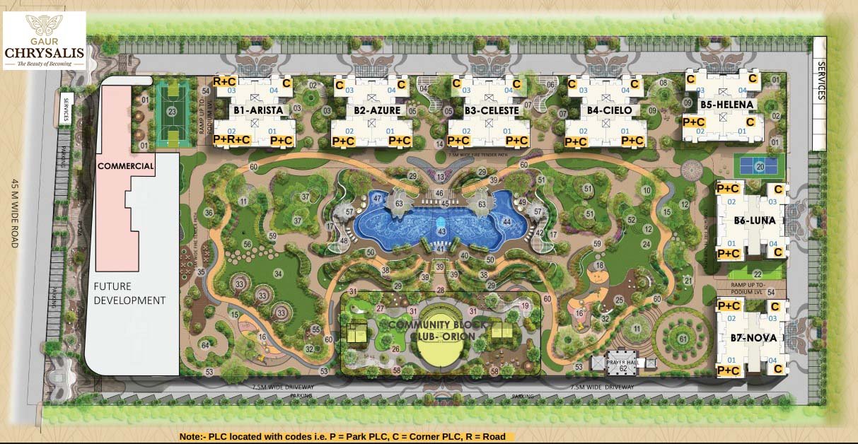 A home in Gaur Chrysalis is a home that comes with a style of living that is comparable to five-star resorts. The main attraction of the development is the enormous 75,000 square. square feet. clubhouse, supervised by famous hospitality professionals.